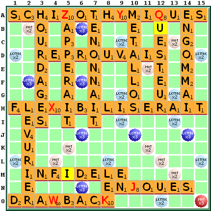Il s'agit de réaliser la partie complète la plus chère comportant exactement quatorze scrabbles.